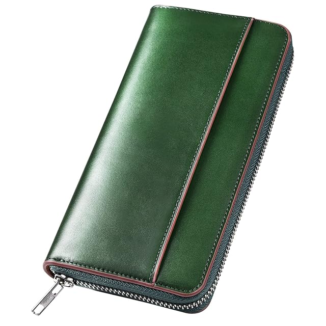 《新品未開封》財布 メンズ 栃木レザー 長財布 本革 大容量 YKKファスナー 一流の財布職人が作る レディース財布 ウォレット 牛革 小銭入れ サイフ コンパクト シンプル 無地 男性 紳士用 おしゃれ 男女兼用 父の日 母の日 人気ブランド プレゼント (グリーン)
