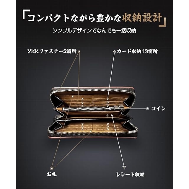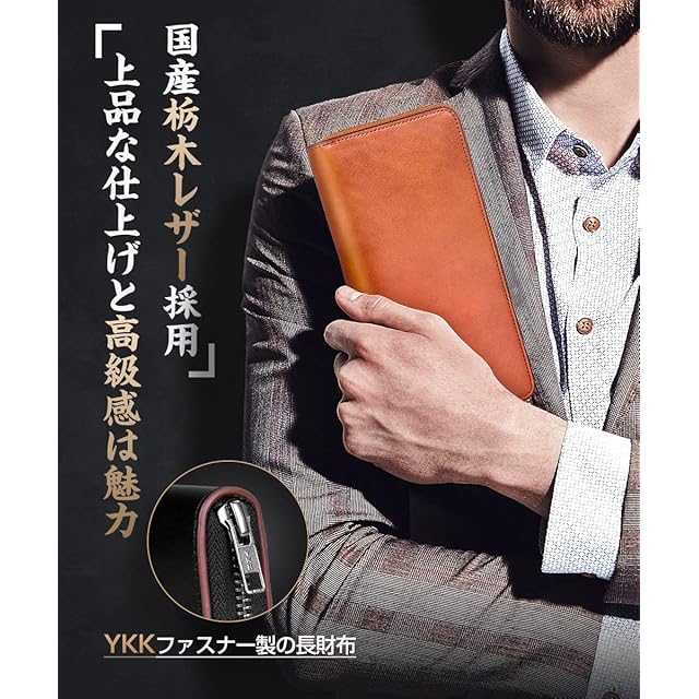 【大容量&YKKファスナー付き】 男女に問わず、大人が選ぶ栃木レザー財布です。財布は表地と内地は牛革を採用して、裏地にはナイロン素材となります。YKKファフナーとこだわりの縫製も欠かせないです。時間に経つと、表面に光沢感が溢れていきます。また、大容量の財布で、小銭入れやカードいれのスペースもたくさんつきます。