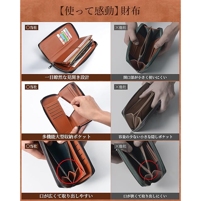 「YKKジッパー採用で安心の財布 メンズ 長財布」日本製YKK高品質ジッパーを採用し、滑らかな開閉と高い耐久性を実現。長期間使用しても壊れにくく、安心してお使いいただけます。(財布 メンズ 長財布、長財布)