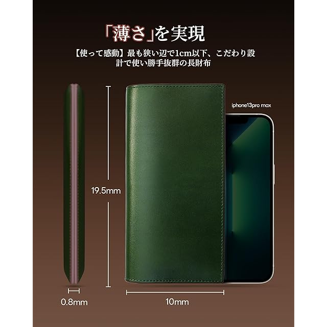 商品名:《新品未開封》財布 メンズ 栃木レザー 長財布 一流の革職人が作る 本革 ウォレット 薄い 大容量 ながざいふ 紳士用 (グリーン)