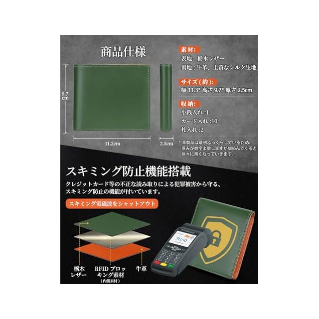 商品名:《新品未開封》Aerokyo栃木レザー 財布 メンズ 2つ折 コンパクト カード10枚収納&RFIDスキミング防止 一流の職人が作る 二つ折り財布 薄型 スリム ビジネス向け 男性 紳士用 日常使い ギフト対応 父の日