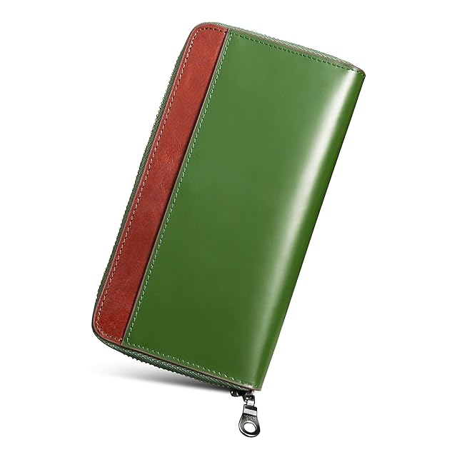 商品名:《新品未開封》財布 メンズ 栃木レザー 長財布 本革 大容量 縦型カード収納 一流の財布職人が作る カードたくさん入る ウォレット ギフトボックス (グリーン+ブラウン)