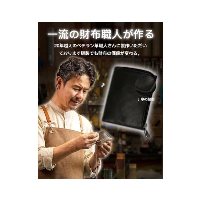 【一流の財布職人が作る】 本製品は天然の本革で製作され、革の特殊の匂いが付いています。本革自体はしっとりと滑らかな質感ですが、使い込んでもコシが抜けにくく、しなやかさと耐久性をしっかりと維持するという特徴があります。伝統的な製法で、職人によるシボ出しや光沢感を出しています。しっとりとした手触りの素材は使い込むにつれて艶が増し、色が深くなり、独特の味が出てきます。※天然本革ですのでキズ・色のムラ・シワ・匂いがある場合がございます