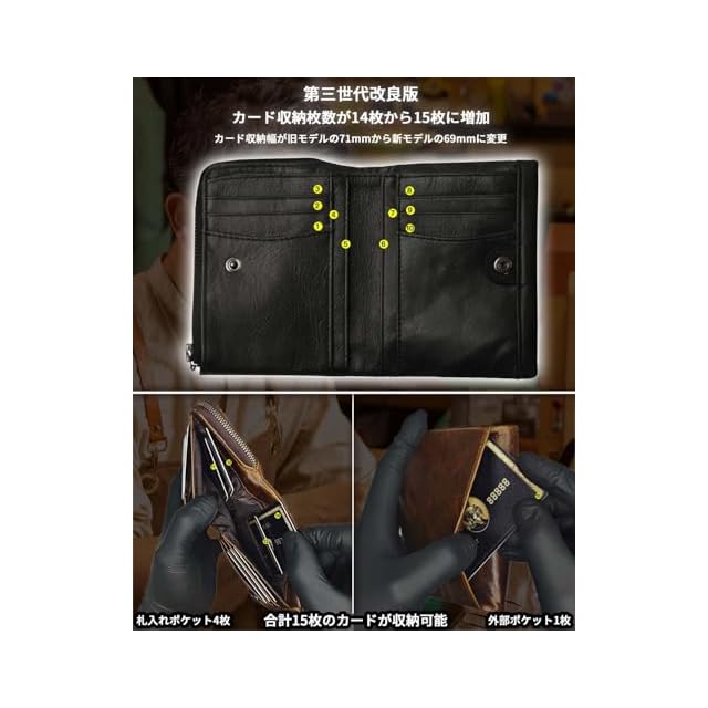 商品名:《新品未開封》[fy FOXYORK] 第三世代 財布 メンズ 二つ折り 本革 YKK製 牛革 大容量 小銭入れ カード14枚収納 RFID磁気防止 一流の財布職人が作る 父の日 入学 卒業 進級進学 誕生日 バレンタイン 贈り物 ギフト クリスマス (くろ)