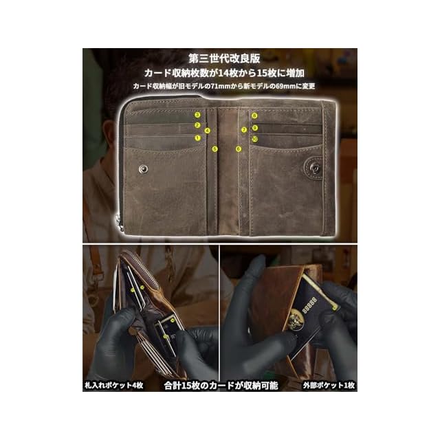 商品名:《新品未開封》[fy FOXYORK] 第三世代 財布 メンズ 二つ折り 本革 YKK製 牛革 大容量 小銭入れ カード14枚収納 RFID磁気防止 一流の財布職人が作る 父の日 入学 卒業 進級進学 誕生日 バレンタイン 贈り物 ギフト クリスマス (はいくろいろ)