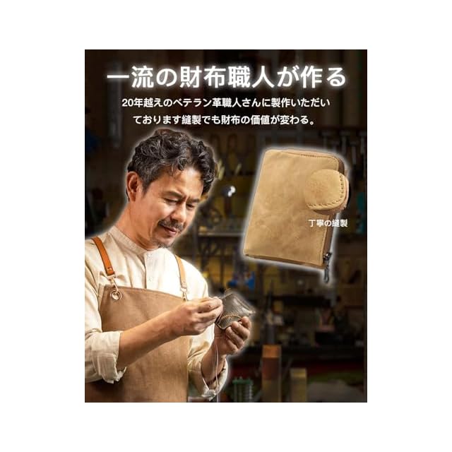 【一流の財布職人が作る】 本製品は天然の本革で製作され、革の特殊の匂いが付いています。本革自体はしっとりと滑らかな質感ですが、使い込んでもコシが抜けにくく、しなやかさと耐久性をしっかりと維持するという特徴があります。伝統的な製法で、職人によるシボ出しや光沢感を出しています。しっとりとした手触りの素材は使い込むにつれて艶が増し、色が深くなり、独特の味が出てきます。※天然本革ですのでキズ・色のムラ・シワ・匂いがある場合がございます