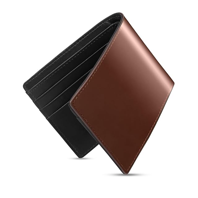 《新品未開封》[Alivern] 財布 メンズ 2つ折り イタリアンレザー 本革 ウォレット カード9枚収納 お札 小銭入れ 薄型 軽量 一流の革職人が作る 折りたたみ財布 サイフ 紳士用 レディース(茶色・ブラック)