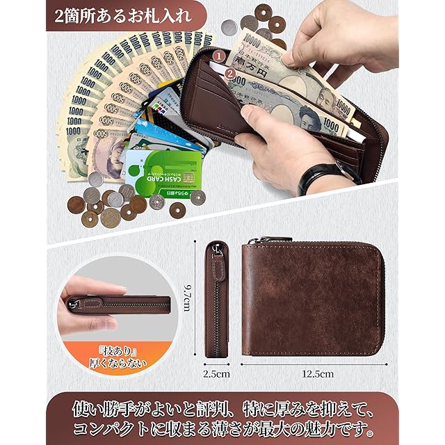 【常に美しい&実用を追求し】効率的な収納空間とコンパクトなサイズを徹底するとともに、どうすれば見やすく使いやすいかを考え抜いた新しい二つ折り財布。現金と、レシートやクーポンなど、クレジットカードや、ポイントカードなどをスムーズに仕分けて整頓し、「常に美しい中身」を目指すために作られた財布、入学・卒業、就職祝い、父の日、お誕生日などに最適です。