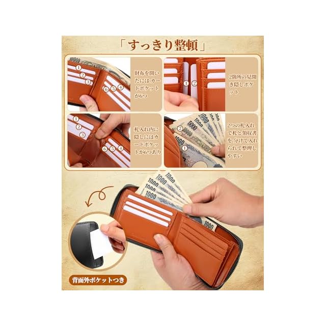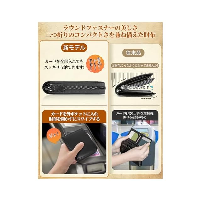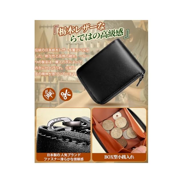 【商品仕様】❶素材 :栃木 レザー、❷サイズ:約12.5*9.7*2.5cm、❸(仕様):カード入れx14、外ポケットx1(ICカードを外側に入れていると、そのままスムーズに改札も通れます)、札入れx2、BOX型小銭入れ×1(貨幣出し入れ簡単)。