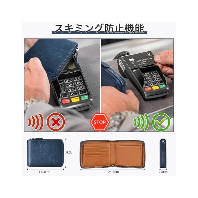 ▶【二つ折り財布 コンパクト-スキミング防止機能】:スキミング防止機能と磁気防止機能により、電子マネーとカードの貴重な個人情報を保護できるので、安心してご使用いただけます。財布専用箱が付きますので、プレゼントにも最適です!