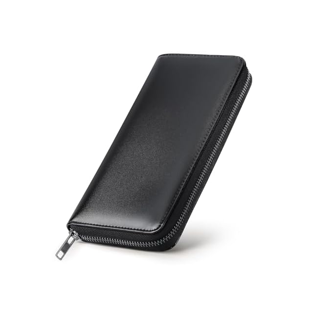 《新品未開封》[Ziegler] 財布 メンズ 長財布 本革 人気ブランド 一流の財布職人によって作られた 大容量 スムーズジッパーを 防犯 暗格カード入れ 小銭入れ 紳士用 ビジネス おしゃれ 牛革(1. ブラック)