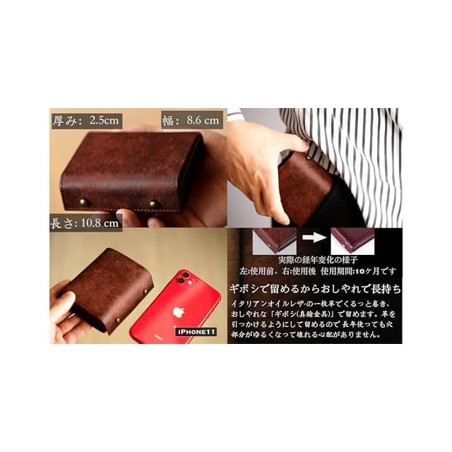 【皮について】プエブロは牛の両肩部分を使用し、1000年以上の歴史を持つイタリアの伝統タンニン法「Vacchetta」を使用しています。植物なめしと牛角油で数ヶ月にわたってなめし、化学物質を使用せず、表面はコーティングされていません。これは最も伝統的で環境に優しい革の製法で呼吸する牛革と呼ばれています。Pueblo皮料は堅牢性と優雅さを結合して、豊富な油脂を含んでいて、質、手触りはとても良くて、表面に触るとかすかな磨り感があって、長期使用すると磨り感が徐々に消えて、革は光沢感に転換して、味は薄く樹脂の味になります