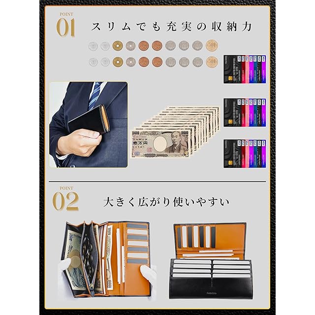 ✅【長財布 薄い 大容量】大容量でも 薄い スリムな 財布。高級イタリアンレザー使用。軽い 薄い オシャレ 3拍子揃った 長財布 。お札10枚、コイン20枚、カード21枚と 大容量 。 メンズ レディース ともに使える 薄い 2つ折り 財布 です。