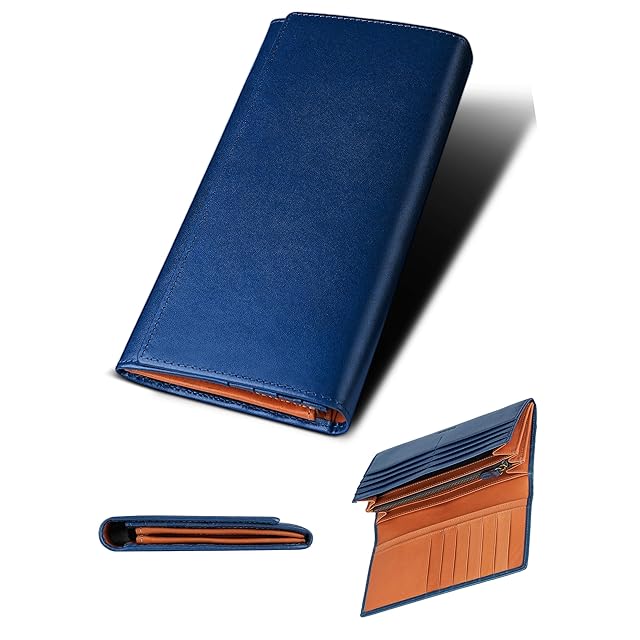 商品名:《新品未開封》[ファブリツィオ] 財布 メンズ レディース 長財布 2つ折り マチ付き 小銭入れ 薄い 大容量 カード21枚 使いやすい イタリアン レザー 一流の革職人が作る 本革 YKKファスナー (ブルー)