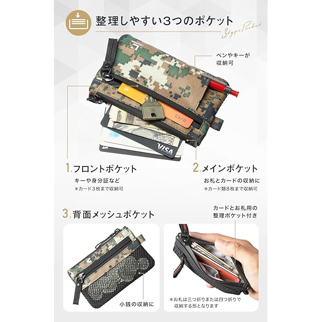 商品名:《新品未開封》[LiberFlyer] 雑誌MonoMax掲載 MINISAFE ミニセフ 防犯ミニマムデザイン×スキミング防止 海外旅行 ミニ 財布 旅行 薄型 撥水 小銭入れ メンズ レディース 取り外し可能 キーチェーン 付き (新素材モデル(Camoグリーン))