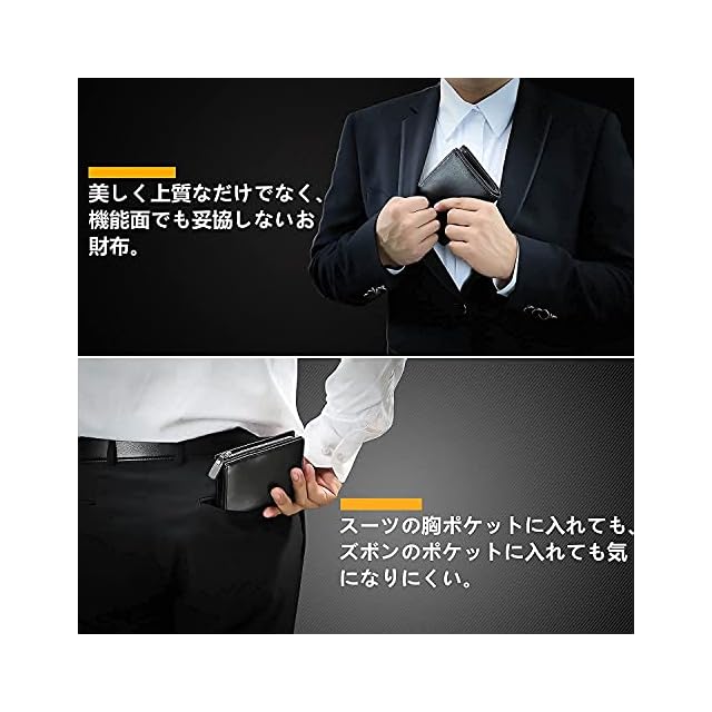 【圧倒的な収納力】驚きの収納力!カードや名刺、札、コインなどを収納できます。カジュアルから仕事まで幅広く使えます。外側にボック ス型小銭入れが設計されているので、紙幣やカード収納部分を開かなくても小銭が出し入れ出来ます。小さい財布が好きな方にもピッタリ の男 用の人気デザインです。