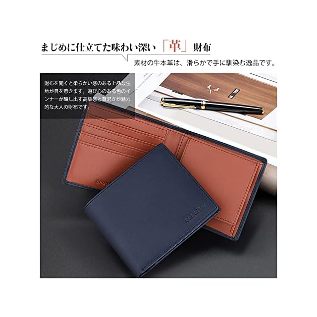 商品名:《新品未開封》[ecoofee] 財布 メンズ 二つ折り 本革 薄い ボックス型小銭入れ 一流 の 財布 職人 が 作る 二つ折り財布 サイフ コンパクト (Blue)
