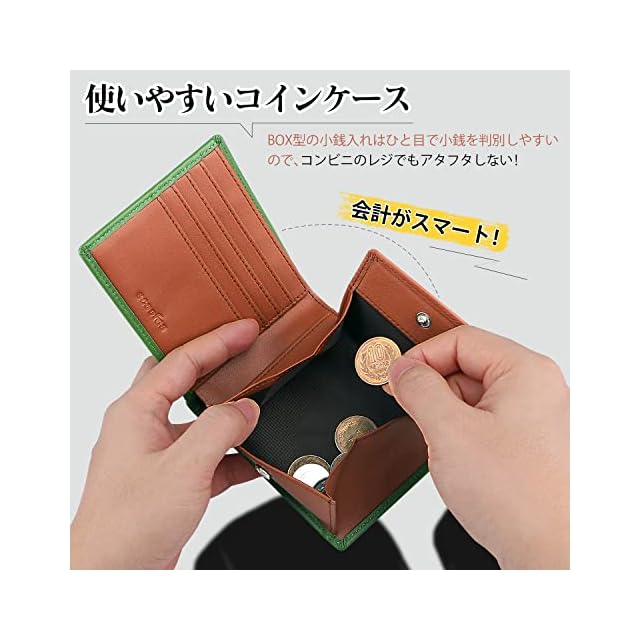商品名:《新品未開封》[ecoofee] 財布 メンズ 二つ折り 本革 薄い ボックス型小銭入れ 一流 の 財布 職人 が 作る 二つ折り財布 サイフ コンパクト (Green)