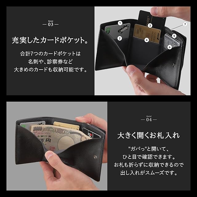 ✅「 充実した カードポケット 」合計7つの カードポケット で、 ミニ財布 ながら、名刺や診察券など少し大きめのカードもラクラク 収納 できます。