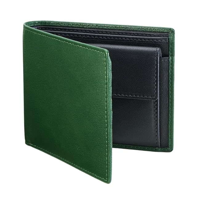 《新品未開封》[ラッフィナート] 二つ折り財布 メンズ コンパクト ウォレット 本革 小銭入れ レザー カード4枚 (グリーン×ブラック)