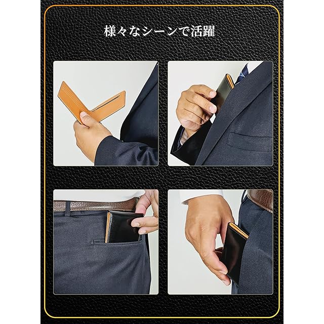 ✅【極薄 スマート 2つ折り財布】厚み1cmのスマートな 財布。高級イタリアンレザー使用。 軽い 薄い オシャレ 3拍子揃った 2つ折り財布 。お札10枚、コイン10枚、カード6枚と 大容量 。 メンズ レディース ともに使える 薄い 財布 です。