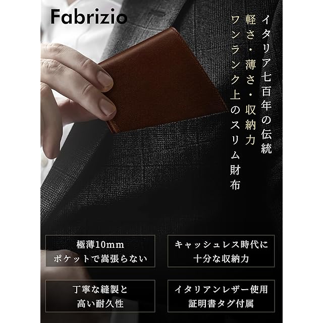 《新品未開封》[ファブリツィオ] 極薄 財布 メンズ レディース 2つ折り 薄い 小銭入れ 使いやすい イタリアン レザー 一流の革職人が作る 本革 YKKファスナー (ダークブラウン)