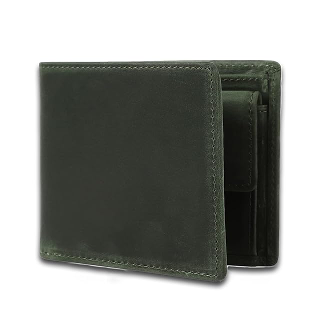 《新品未開封》[亀登鞄製作所] 財布 メンズ 2つ折り財布 二つ折り財布 本革 薄型 ( 経年変化を楽しむ逸品 ) コンパクト 大容量 革 小銭入れ 薄い かさばらない カード ミニ財布 小さい 軽い 軽量 レザー (グリーン)