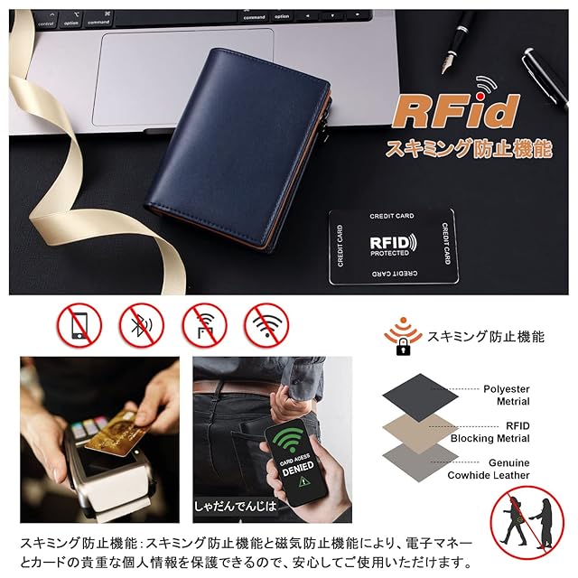 【財布 メンズ 本革 -スキミング防止機能】:スキミング防止機能と磁気防止機能により、電子マネーとカードの貴重な個人情報を保護できるので、安心してご使用いただけます。財布専用箱が付きますので、プレゼントにも最適です!
