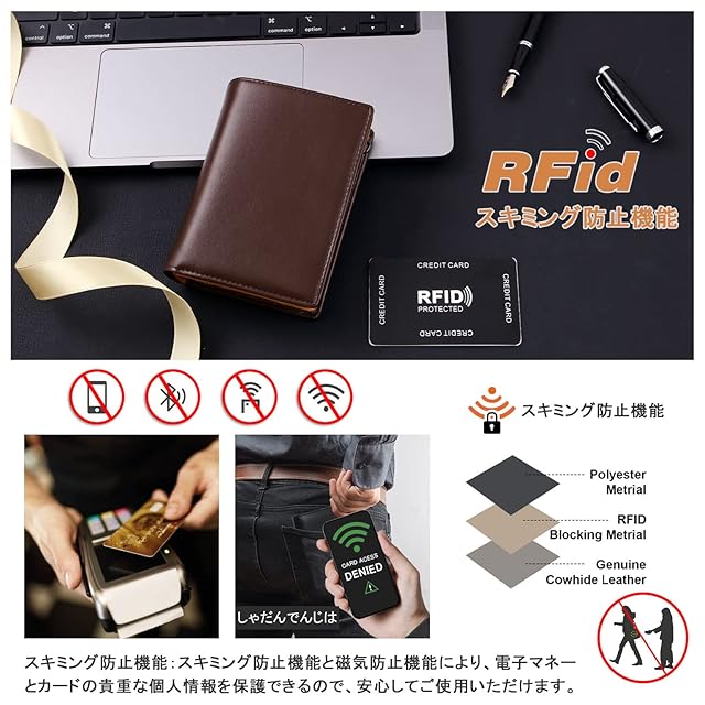 【財布 メンズ 本革 -スキミング防止機能】:スキミング防止機能と磁気防止機能により、電子マネーとカードの貴重な個人情報を保護できるので、安心してご使用いただけます。財布専用箱が付きますので、プレゼントにも最適です!