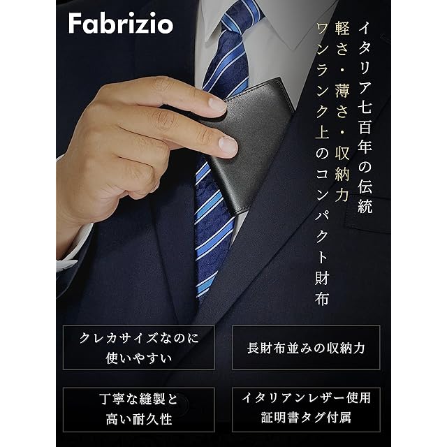 商品名:《新品未開封》[ファブリツィオ] 財布 メンズ レディース 2つ折り 小銭入れ ミニ財布 小さい 薄い コンパクト 柔らかい 使いやすい イタリアン レザー 一流の革職人が作る 本革 (シャインブラック)