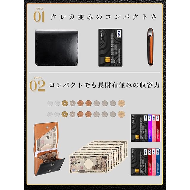 ✅【使いやすい 大容量 ミニ財布】軽い 薄い コンパクト 3拍子揃った 2つ折り 小さい財布 。 お札10枚、コイン20枚、カード8枚以上と 長財布 並みの 大容量 。 メンズ レディース ともに使える 薄い財布 です。