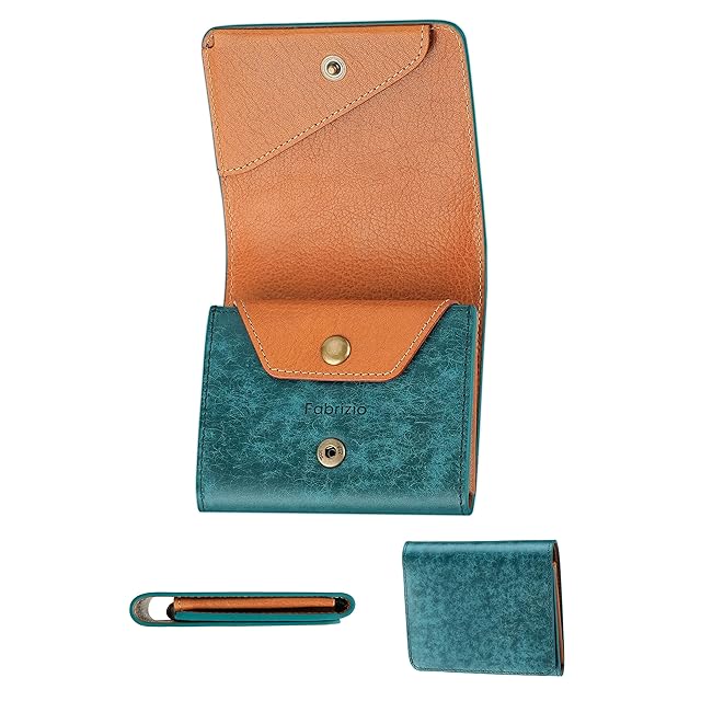 《新品未開封》[ファブリツィオ] 財布 メンズ レディース 2つ折り 小銭入れ ミニ財布 小さい 薄い コンパクト 柔らかい 使いやすい イタリアン レザー 一流の革職人が作る 本革 (ペトローリオ)