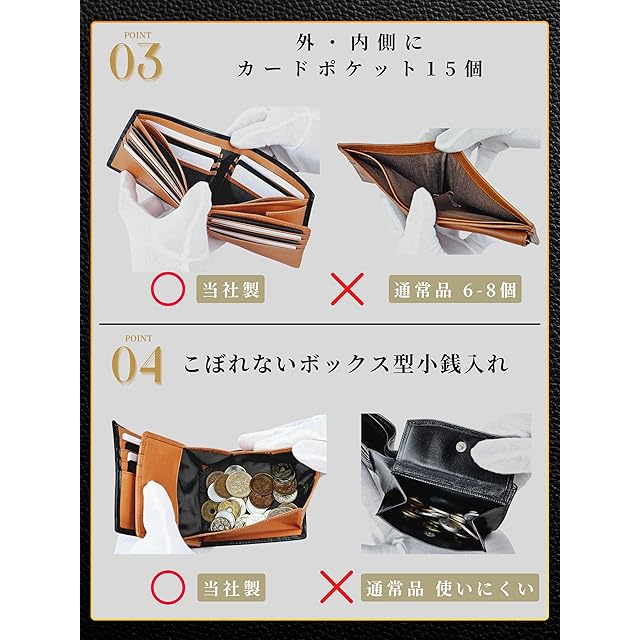 ✅【 タイプ 】ふたつおり財布 【 サイズ 】横幅11.5cm×縦幅9.5cm×厚み1.6cm 重さ75g 【 仕様 】カードポケット×8 隠しカードポケットx6 ボックス型 小銭入れ ×1 札入れ (中仕切り)×1 フリーポケット×1