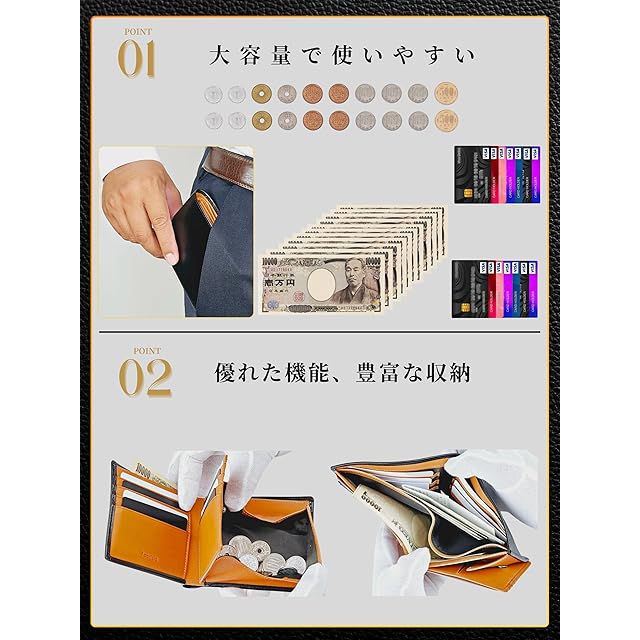 ✅【 喜ばれる ギフト 】20代~50代の男性に向けた メンズ財布 として、贈り物にもおすすめです。そのままプレゼントできるように 化粧箱 も付属しております。こちらの さいふ はイタリアのトスカナ地方で作られた革であることをする、イタリアタンニン植物鞣し革協会のタグを同梱しております。