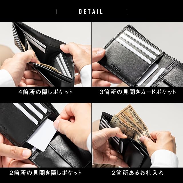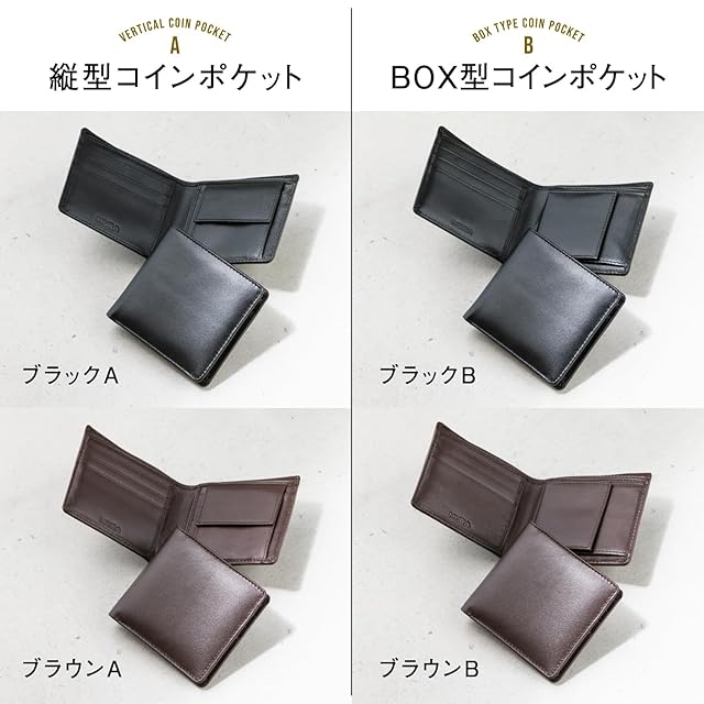 商品名:《新品未開封》[ムラ] 二つ折り財布 財布 メンズ 本革 二つ折り 軽い レザー カード7枚収納 隠しポケット (ブラックB type:BOX型コインポケット)