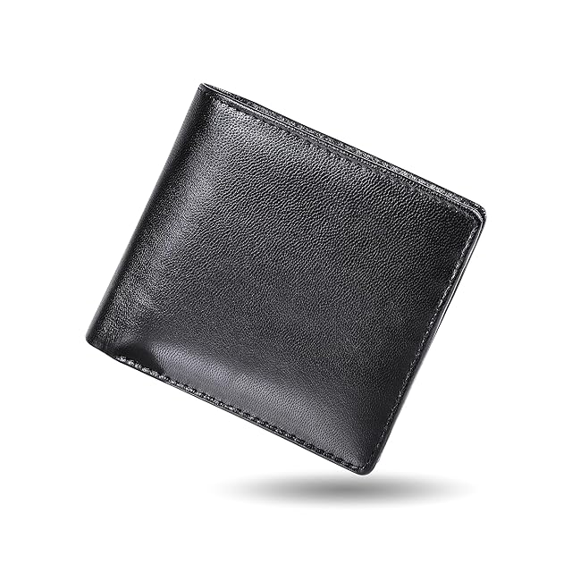 《新品未開封》[ムラ] 二つ折り財布 財布 メンズ 本革 二つ折り 軽い レザー カード7枚収納 隠しポケット (ブラックB type:BOX型コインポケット)