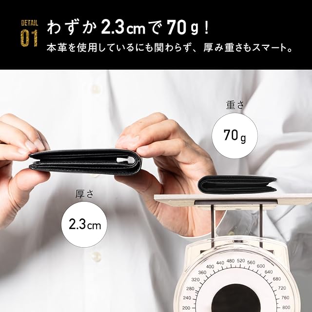 ✅【わずか70gの圧倒的な軽さ】本革を使用にも関わらず、70gという圧倒的な軽さです。パンツのポケットに入れていても所持していることを忘れるほどの軽さです。パンツだけでなく胸ポケットに入れても気になりにくく身軽に動きやすい人にもオススメです。