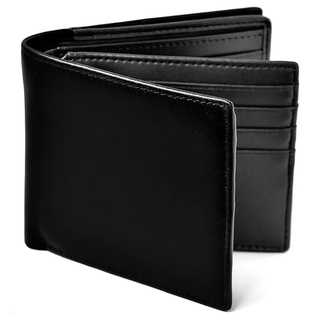《新品未開封》[ルスリール] 二つ折り 財布 本革 大容量 カード 18枚収納 新設計のボックス型小銭入れ メンズ (ブラック×ブラック)