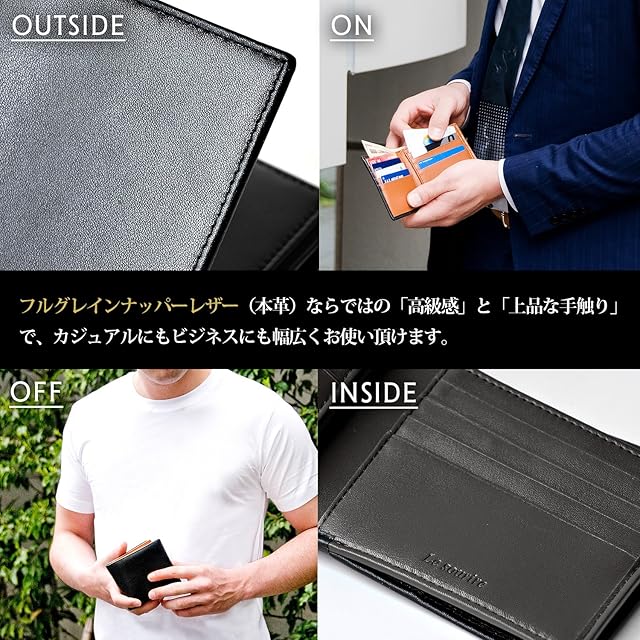 【これ1つで全てを収納できる大容量財布】 抜群の収納力で最大18枚のカードが収納可能。 必要な物全てをこの財布1つで持ち運べます。 大容量財布にありがちな、 「沢山入れたら閉じれない」という悩みも、 1つのカードホルダーの収納枚数を4枚にすることで解消。 カードを沢山入れても、 ズボンのポケットやスーツの内ポケット、 カバンなどに入れてスマートに持ち運べます。 収納力を確保するために、 1つのカードホルダーのカード収納枚数を5枚にしている財布が多いですが、 5枚では問題が発生します。 ・キツキツでカードが入れにくい ・カード同士が重なり、何のカードが入っているか一目で分からない ・閉じられない Le sourireの大容量財布は、1ホルダー4枚のカード収納で、 上記の問題を解消しています。