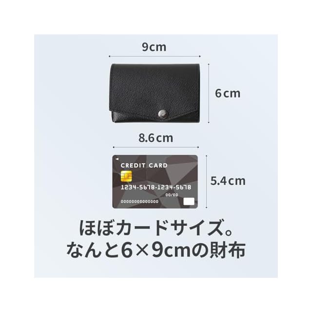 abrAsus (アブラサス)の「小さい財布」は、ほぼカードサイズ。なんと縦:約6cm×横:約9cm、厚さは約1cm(未収納時)