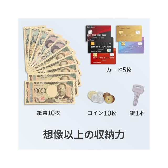 カード、コイン、お札が入って、更にお札を折らずに収納することができます。このサイズの違いが、ポケットやバッグの中での快適さを大きく変えます。