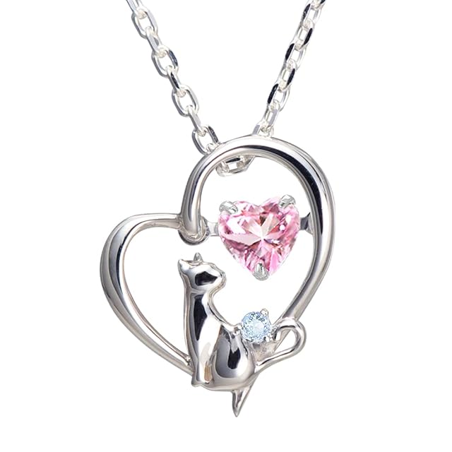 商品名:《新品未開封》[未来天使] ネックレス レディース ハート 猫 ダンシングストーン シルバー 選べる 誕生石 【ベビーピンクカラー】 3月 アクアマリン