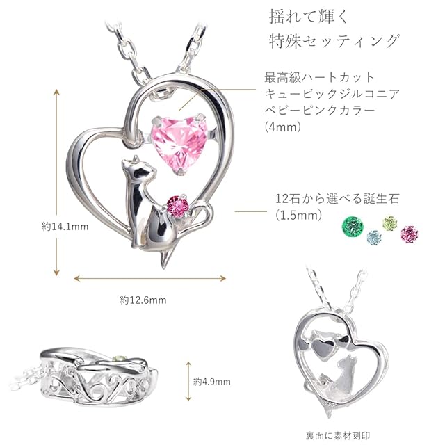 石が踊るように揺れる特別なセッティング<BR>煌めく最高級ジルコニア。お色はベビーピンクカラー。 <BR><BR> 眩いほど煌めく、ダンシングストーンのキラキラ揺れる輝きを 優しいハートで包みました。 <BR>あなたを幸せにする輝きを、キュートな猫が見つめています。 <BR>くるんとなったしっぽと合わさってハートを形づくる石には、あなたのお好みの誕生石をセッティング致します。