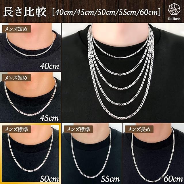 《新品未開封》[RaHash] ネックレス チェーン メンズ 喜平 シルバー 925 ブランド [ 銀 6面カット 幅2mm ] [ 50cm ]