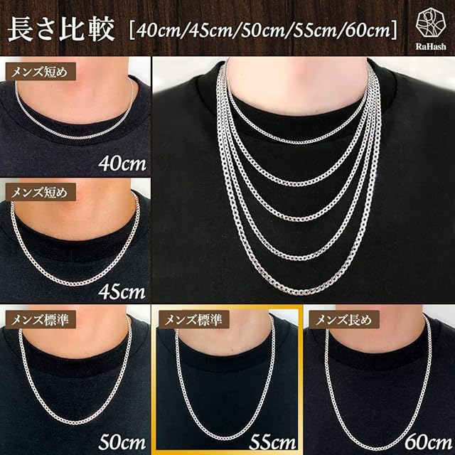 《新品未開封》[RaHash] ネックレス チェーン メンズ 喜平 シルバー 925 ブランド [ 銀 6面カット ダブル 幅5mm ] [ 55cm ]
