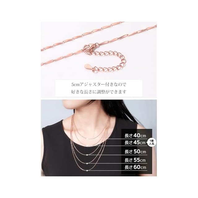 商品名:《新品未開封》[Suplight] ネックレス チェーンのみ ピンクゴールド 人気 細め メロシードチェーン レディース アレルギー 幅1mm 長さ55cm+5cmアジャスター