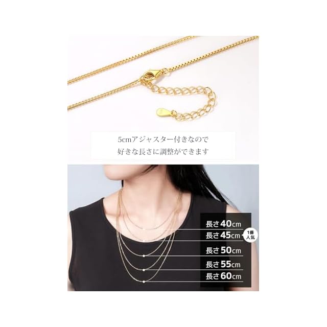 商品名:《新品未開封》[Suplight] ネックレス チェーンのみ ゴールド 18金 ベネチアンチェーン レディース 細め アレルギー 幅1mm 長さ45cm+5cmアジャスター