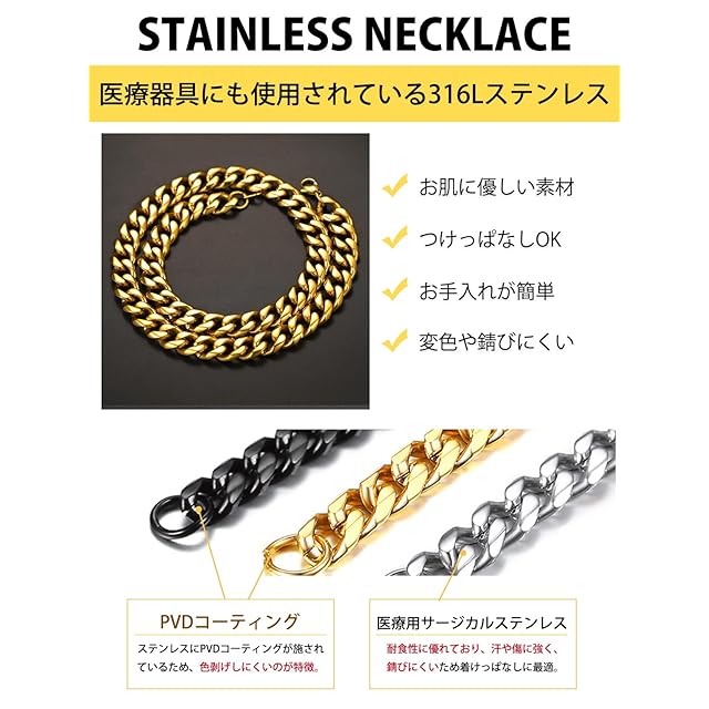 商品名:《新品未開封》[ChainsHouse] ネックレス メンズ チェーンのみ サージカルステンレス 喜平 ゴールド k18 金属アレルギー 56cm 12mm アクセサリー