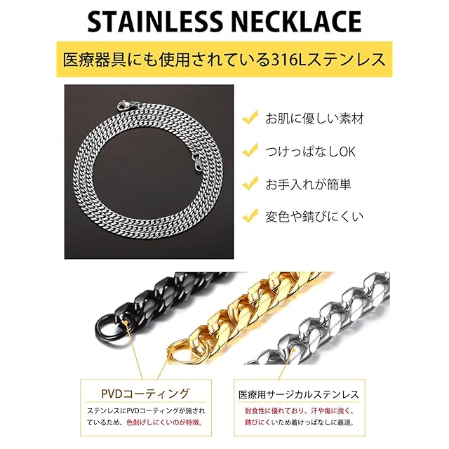 【ステンレスネックレス】地金はステンレスを採用。「錆びにくい」「アレルギー反応を起こしにくい」ので、お肌に優しい素材として人気です。