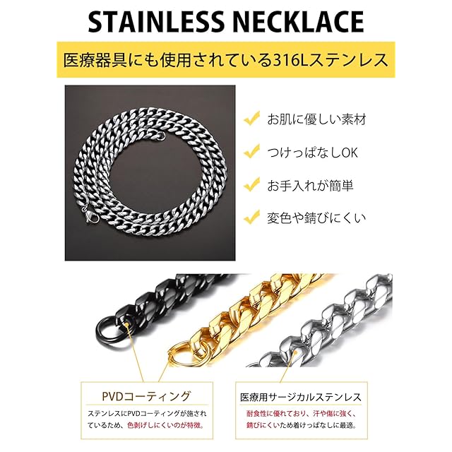 【ステンレスネックレス】地金はステンレスを採用。「錆びにくい」「アレルギー反応を起こしにくい」ので、お肌に優しい素材として人気です。